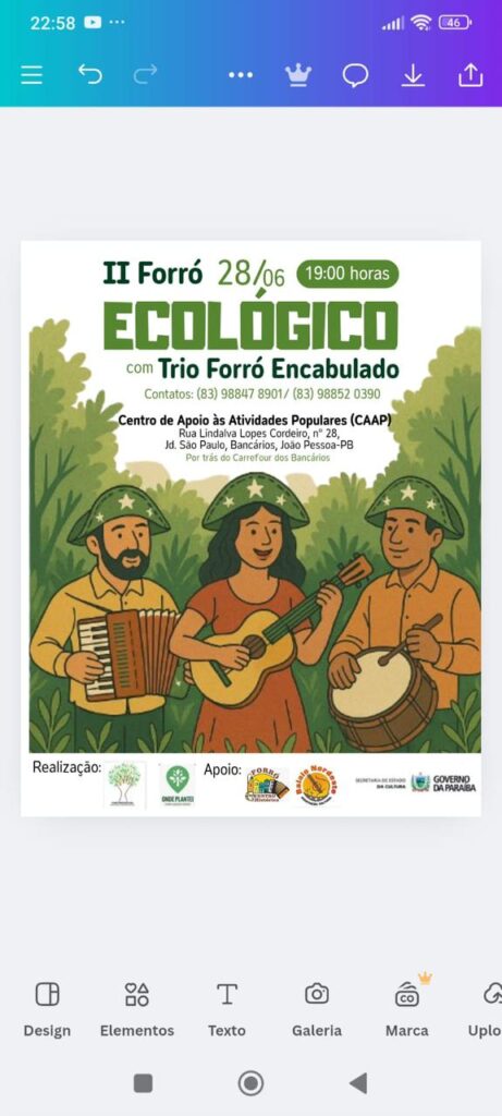 Reserve uma mesa pelos fones (83) 98847 8901 e (83) 98852 0390. O apurado da festa será revertido para ações de preservação ambiental através da produção de árvores nativas e frutíferas. Mesa: R$ 100,00 Individual: R$ 25,00.